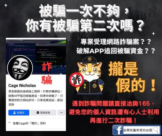 1131118-遇到詐騙問題請直接洽詢165,避免您的個人資料遭有心人士利用,再進行二次詐騙