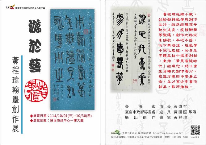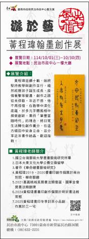 臺南市政府民治市政中心藝文展:黃程瑋翰墨創作展--游於藝(民治市政中心發布)